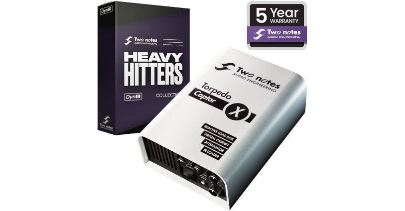 Picking up a Torpedo Captor X (any Ohm-variant), a Torpedo Captor (any Ohm-variant) or a C.A.B. M+ between the 5th of May and the 7th of July, 2022, earns you some awesome extras, including the new DynIR Heavy Hitters Collection worth close to £100. This pack features IRs from Mesa Engineering, Celestion, Pete Thorn, Dave Friedman, Phil X and other reputable names in the music industry. In addition, the warranty will be extended up to no less than five years. The only thing you have to do is register your purchase via the Two Notes website. In the words of Two Notes: "The pack means passion. The warranty means trust."