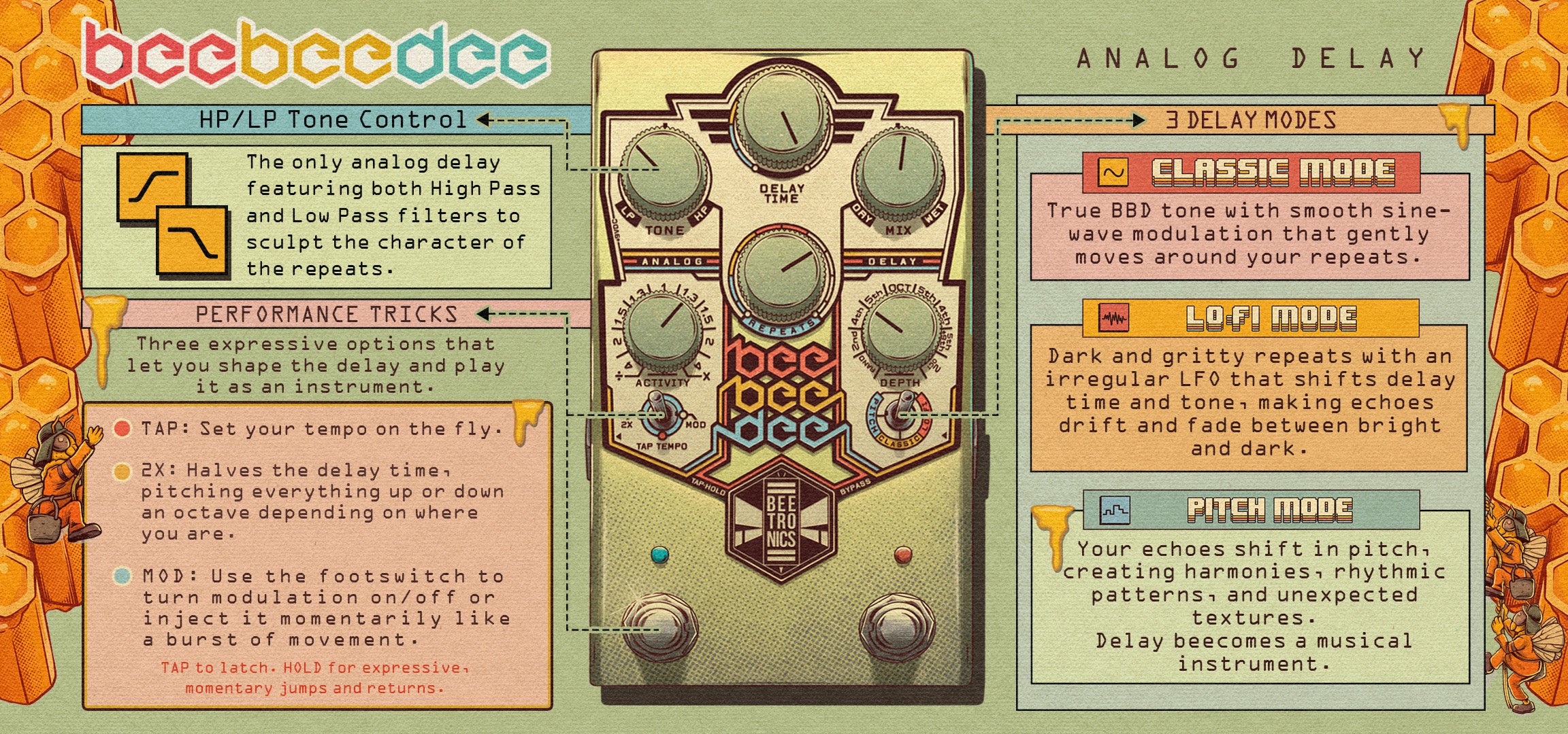 Beetronics Bee Bee Dee analog fördröjningseffektpedal